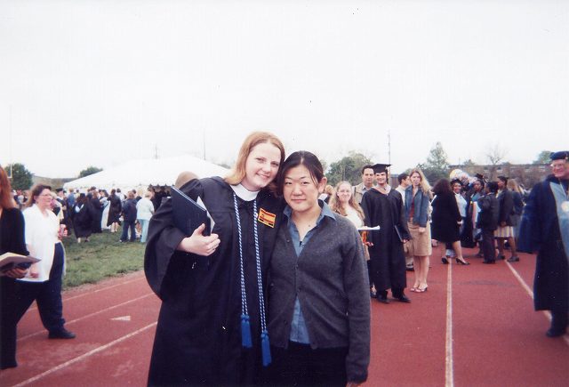 Mariko in Vickroy Hall and LVC student ID card