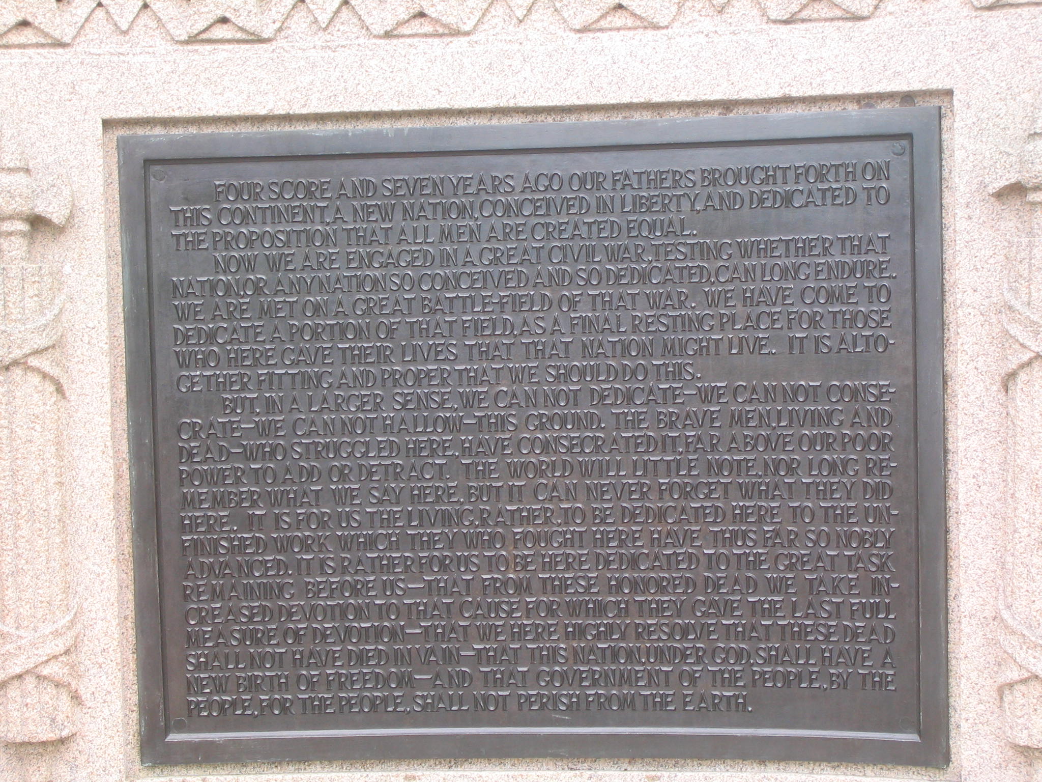 リンカーンの演説で有名なゲティスバーグ。拡大すれば覚えのある演説が読み取れると思います。いまだに亡霊が漂ってるような広大な古戦場でもあり墓地でもありました。