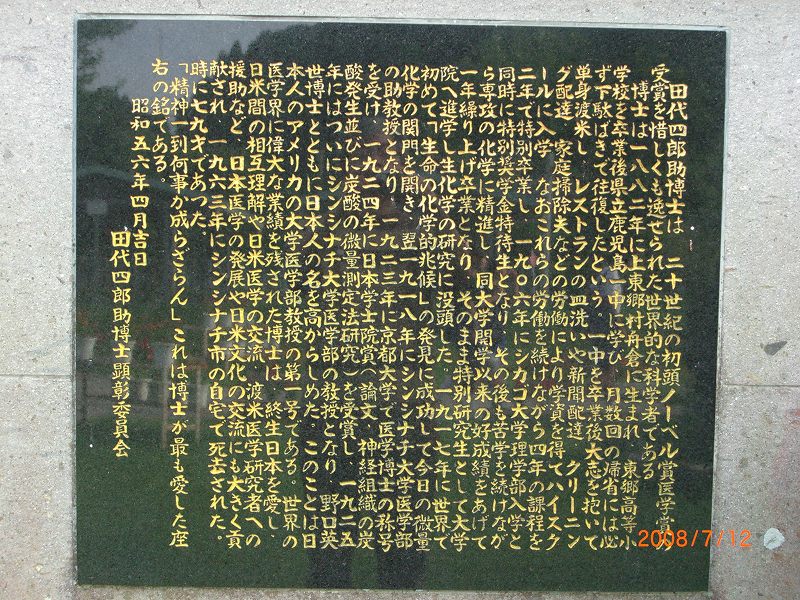 東郷中に、こんな凄い先輩がいたとは!!残念ながら、当時、殆どの我々同期生は知らなかった。郷土の誇り田代博士のことを、もっと語り継いでいきましょう。きっと次世代を担う子供達の励みになることでしょう。顕彰碑設立のメンバーも将に同じ思いだったことでしょう。